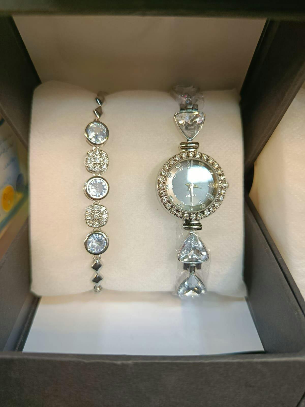 β¨ A.B Store presents this stunning Luxury Ladies Watch & Bracelet Set, crafted with an elegant rose gold finish and sparkling crystal stones π. The quartz watch ensures accurate timekeeping β while the matching bracelet adds a classy touch π. Perfect for parties, weddings, and daily wear π. An ideal gift for Eid, birthdays, and anniversaries π.